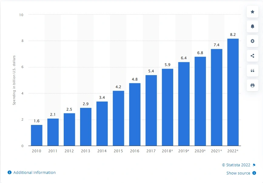 Non sorprende che il mercato del marketing di affiliazione negli Stati Uniti abbia raggiunto 8,2 miliardi di dollari nel 2022, rispetto ai 5,4 miliardi del 2017.